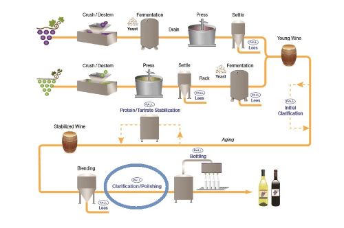 大規模なワイナリーでは、一部のワインは外部の瓶詰め場所に出荷する前に、または大量の海外出荷のために研磨ろ過を実施する場合があります。